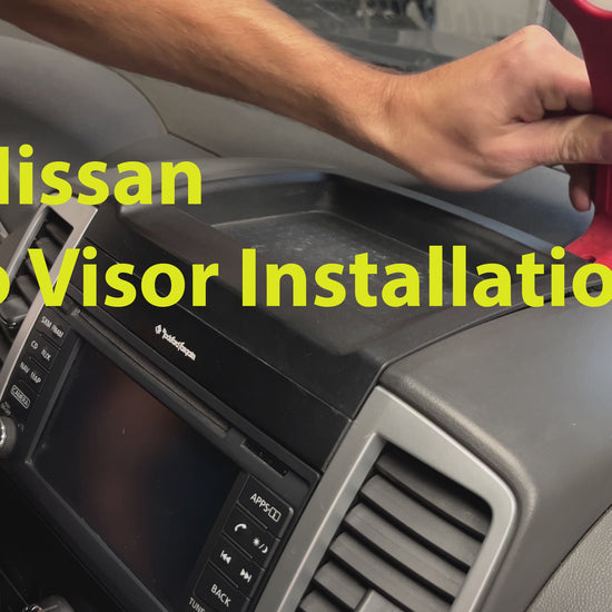You may have noticed the dashboard in your second generation Nissan Frontier and Xterra is angled in such a way that sun shining though the windshield will often fog the screen of your radio/ navigation unit. This visor is a simple, quick, and stylish way to permanently keep sun off your radio screen.